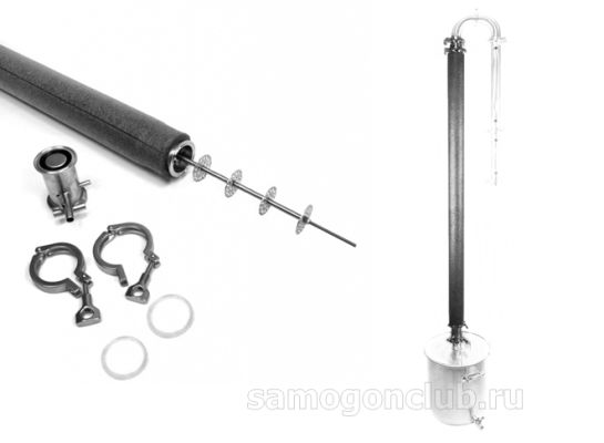 Непрерывная бражная колонна НБК-51 предназначена для быстрой перегонки жидких браг в спирт-сырец. Узел подачи может быть прямым или встроен в отвод (в комплект не входит).