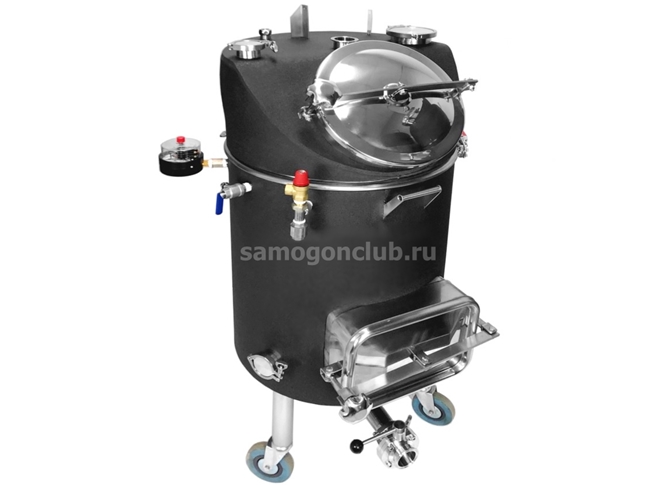 Пароводяной котел предназначен для варки густых браг, зерновых заторов, приготовления крепких алкогольных напитков. Может входить в состав варочного порядка для приготовления пива. Крышка утеплена. На крышке - два клампа 2", один из них - со скобой и заглушкой, и один кламп 4" со скобой и заглушкой. Блок управления закреплен на кубе, блок-ТЭН на клампе. В рабочей емкости дополнительный кламп под ТЭН для прямого нагрева. К нему можно также подключить сливной кран и сливать выше дна (кран приобретается отдельно). Симисторный регулятор мощности обеспечивает плавную регулировку.