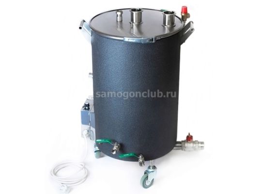 Пароводяной котел предназначен для варки густых браг, зерновых заторов, пива, приготовления крепких алкогольных напитков. Крышка утеплена. На крышке - два клампа, один из них - со скобой и заглушкой. Блок управления закреплен на кубе, блок-ТЭН закручивается в муфту 1 1/4". Симисторный регулятор мощности обеспечивает плавную регулировку. Для фильтрации сусла в ПВК 60 л можно использовать бункер для солода от куба 72 литра (бункер приобретается отдельно)