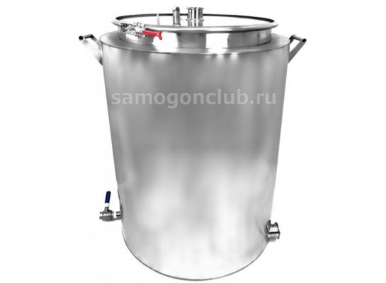 Сверху установлены: кламп 2", проходная трубка для термометра или манометра, подрывной клапан Сбоку установлены: сливной кран 3/4", два клампа 2" под ТЭНы с заглушками Разметка литража: есть