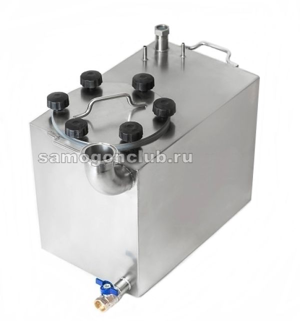Есть подрывной клапан, трубка для манометра, гильза для термометра. Между кубом и крышкой - уплотнитель из пищевого силикона.