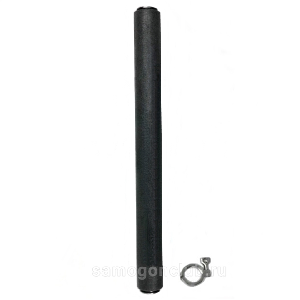 Нижняя царга от РК-51 позволяет получить крепость продукта до 96%. Царга утеплена и засыпана спирально-призматической насадкой (СПН). В 20 см от края царги расположена герметичная гильза для термометра из трубки ф8х1. Рабочая мощность с доп. царгой - примерно 2 кВт. При этой мощности для получения спиртуозности 95-96% рекомендуемая скорость отбора - 1,5-2 л/час.